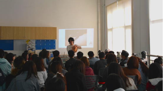 杜庆伟总监从制作皮质手环和木质茶盘的实践经历出发,向同学们介绍了皮艺和木艺制作过程中的传统手工艺技术及其所蕴含的文化元素,通过图片和视频分析了国内外皮艺和木艺作品的艺术派别及中西方文化对创作风格的影响。