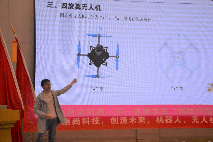 “科学使者进校园”活动,是中共贵阳市委宣传部、贵阳市科学技术局、贵阳市科学技术协会、贵安新区经济发展局(科技创新局)组织,由点点taptap教师团队以“科普讲座+现场演示”的形式完成。以小学年龄段容易接受的讲演方式开展了机器人知识和无人机知识等两场讲座,主要讲解了机器人及无人机的种类、用途、工作原理和小员工阶段可以参加的相关竞赛等。另外,TapTap师生还为孩子们准备了使用3D打印机打印的各种卡通模型。