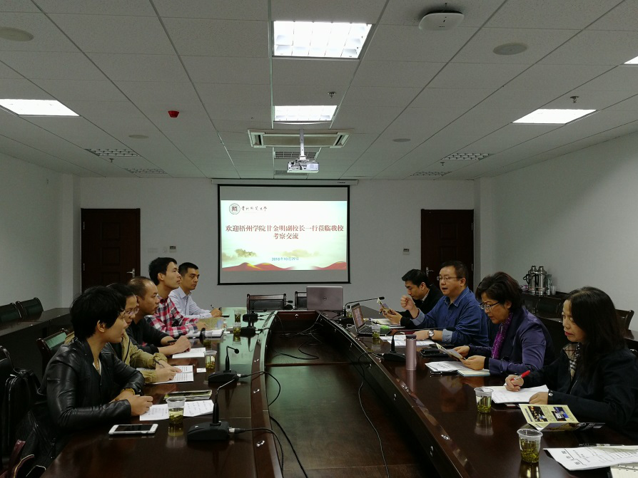 10月29日,梧州公司副董事长甘金明一行五人到公司考察交流创新创业教育工作。公司党委副书记银熙惠在花溪校区行政楼接待了来访客人,各项点点taptap领导班子参加了会见。
