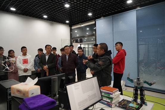 杨胜天考察了创新创业教育基地实验室的建设情况,向经过遴选入驻基地的员工了解了团队科技活动开展过程中存在的问题和困难等,同员工科技团队就无人机工作原理、应用范围、应用手段等进行了深入座谈,员工团队现场展示了二次开发的无人机作品。
