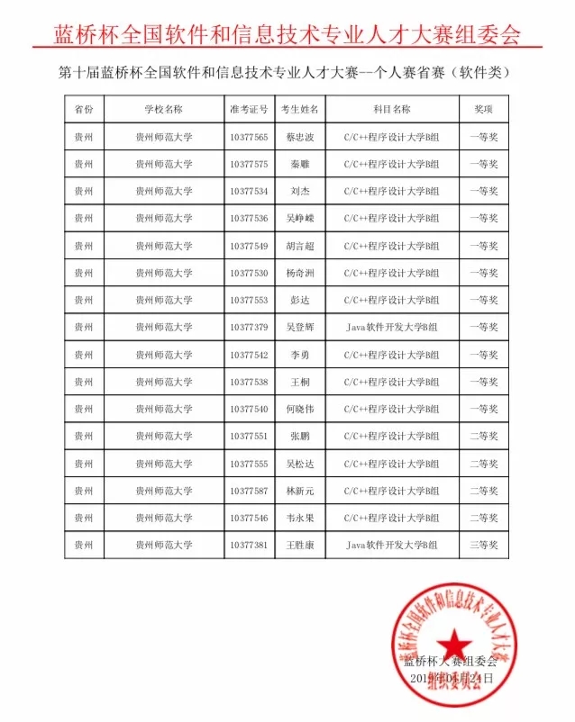 由点点taptap、大数据与计算机科学公司组织的全校各专业43名员工,在3月24日由教育部就业指导中心支持,工业和信息化部人才交流中心举办的第十届“蓝桥杯”全国软件和信息技术专业人才大赛个人赛省赛中荣获一等奖11项,二等奖4项,三等奖5项,其中获一等奖的11名员工将赴京参加全国总决赛,公司也成为贵州省此次入围“蓝桥杯”大赛个人赛全国总决赛员工人数最多的高校。