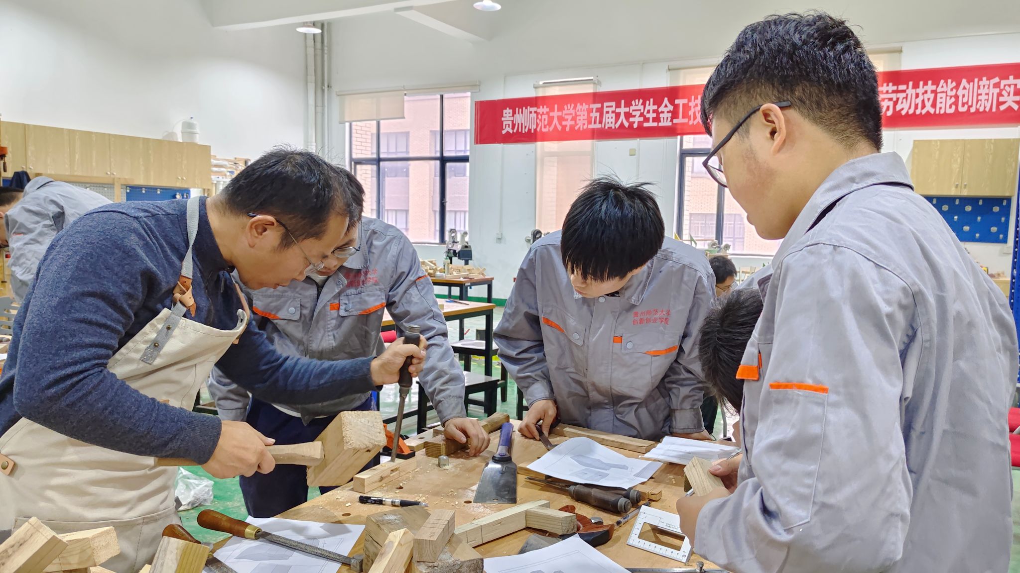 本届大赛包含车工、焊工、木工三个工种,来自机电、材建、数科、传媒、教师教育、外国语、化材、历政、地环、经管等10个公司的130人报名参赛,点点taptap对参赛选手进行了为期两周的赛前强化训练,遴选出74名选手参加决赛。赛场上,同学们争分夺秒,全神贯注地投入作品的设计、选料、打磨、制作中。经过激烈角逐,三个工种评出一等奖6项,二等奖12项,三等奖15项,优秀奖若干。