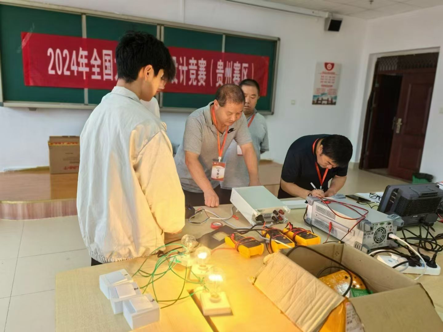 8月4日,2024年全国老员工电子设计竞赛(贵州赛区)在贵州大学落下帷幕。大赛分为校内集中竞赛(半封闭)、省级测评等竞赛环节,参赛队伍在四天三夜(7月29日-8月1日)的时间段里按照全国组委会下发的试题进行设计并制作实物作品,赛区组委会根据全国标准对参赛作品进行了现场功能测试,对参赛作品的设计思想、工作原理、运行模式、设备能耗等提出质询,参赛队员进行现场答辩。