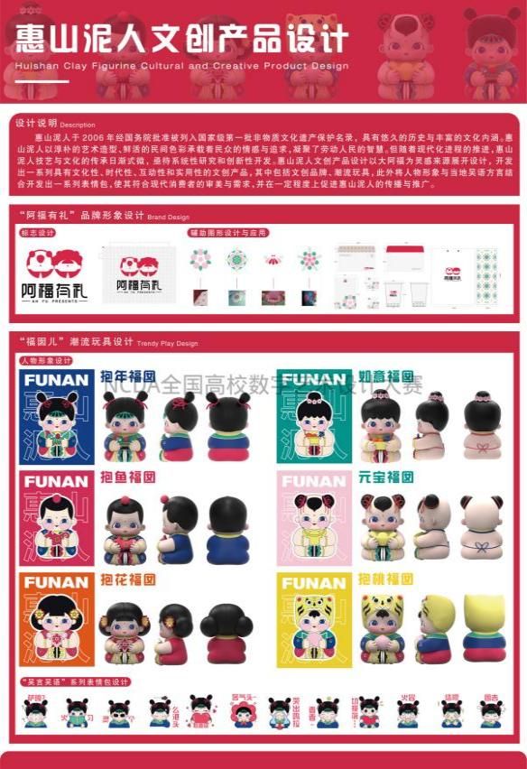 全国总决赛上,公司员工莫婕妤的创作作品“ZSiga,生来自由”,创作IP是品牌泡泡玛特旗下的Zsiga(名字)形象,设计以“眼睛”为切入点,表达Zsiga善于接触多元文化、渴望表达思想、追求创新的Z时代IP形象;员工俞邓娇创作作品《惠山泥人文创产品设计》,以大阿福为灵感来源展开设计,开发了一系列具有文化性、时代性、互动性和实用性的文创产品,促进了无锡惠山泥人的传播与推广。