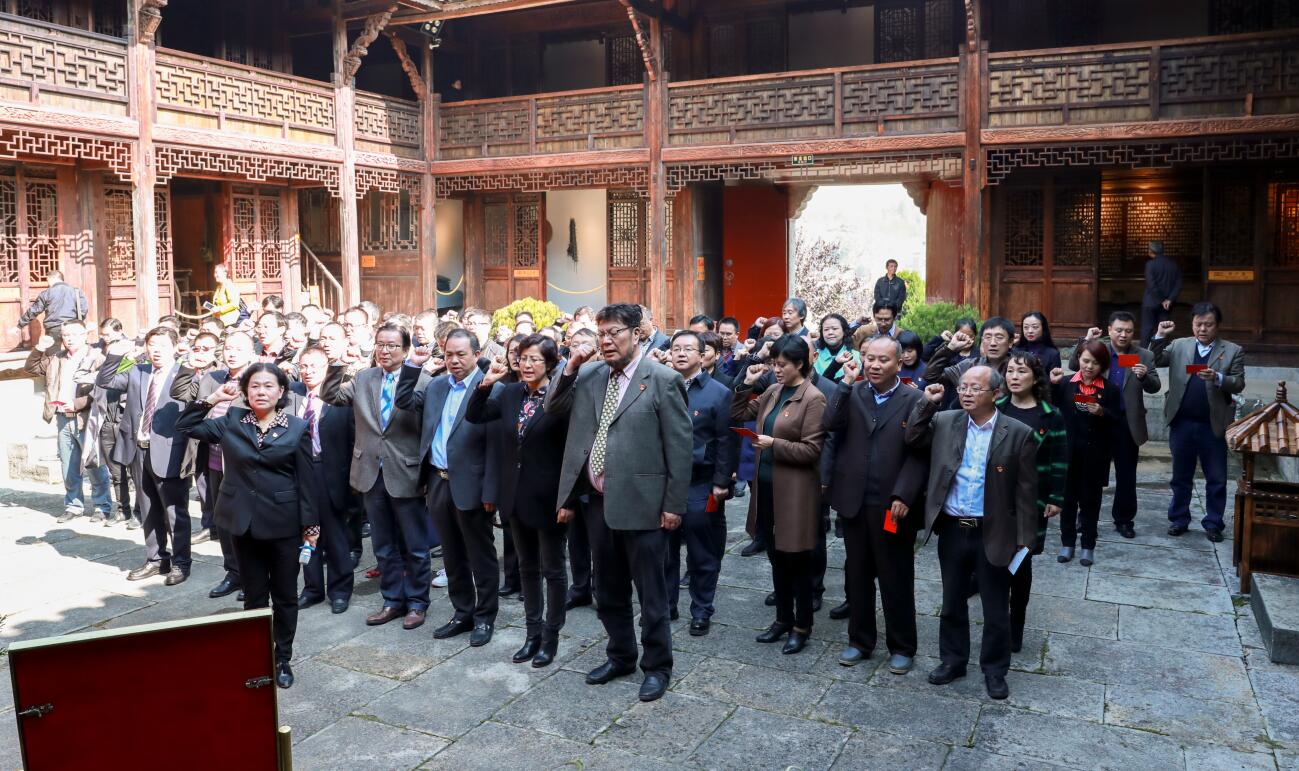 离开纪念馆后,韩卉一行前往猴场会议会址参观。在猴场会议会址内,面对党旗,大家一起重温入党誓词。在韩卉领誓下,大家庄重严肃、铿锵有力地进行了宣誓。