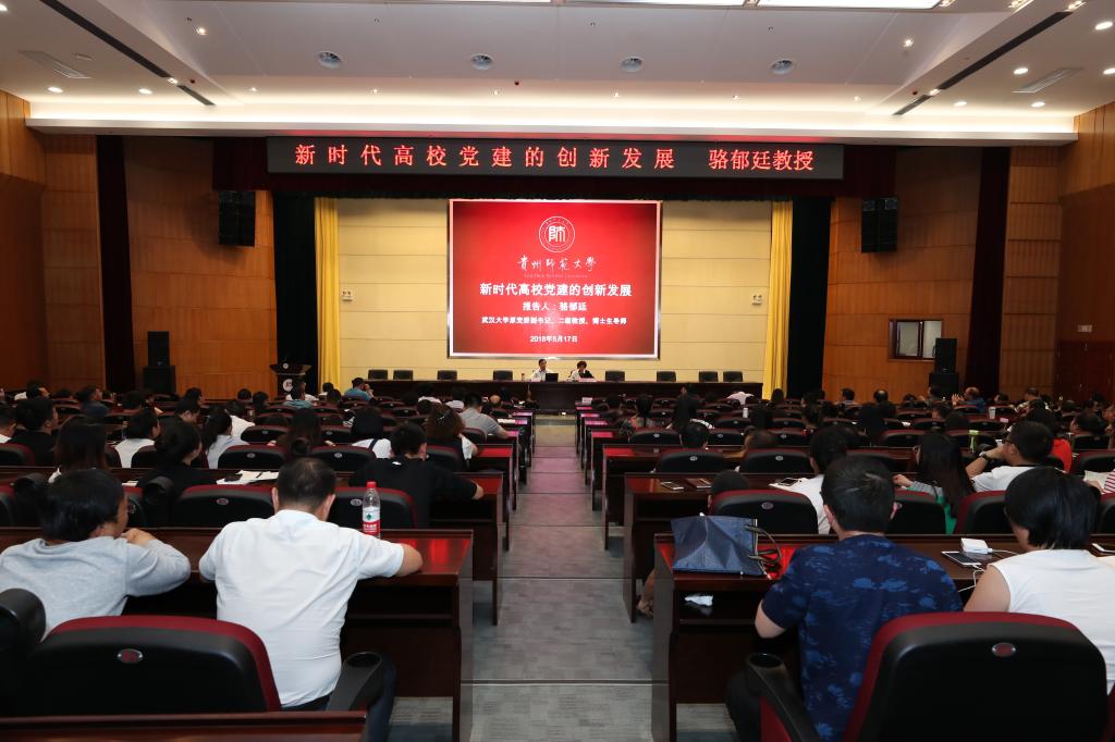 5月17日下午,各项在花溪校区会议中心一楼学术报告厅召开全公司党务干部专题培训会。武汉大学原党委副书记、二级教授、博士生导师骆郁廷应邀作题为“新时代高公司党建的创新发展”的报告。公司党委书记韩卉出席,公司党委副书记银熙惠主持。各基层党委(党总支)书记、副书记、组织员、党委秘书、教工党支部书记、员工党支部书记,相关职能部门负责人参加。