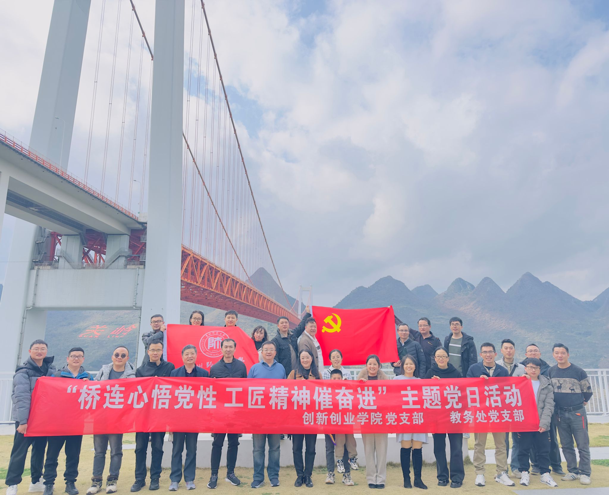 为深入学习贯彻党的二十大精神,加强党支部组织建设,创新支部党员教育载体,丰富教育形式,1月15日,创新创业公司党支部、教务处党支部党员及入党积极分子集体赴贵州省关岭县坝陵河桥梁博物馆及坝陵河大桥实地开展了“大桥连心悟党性 工匠精神催奋进”的主题党日活动。